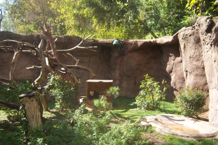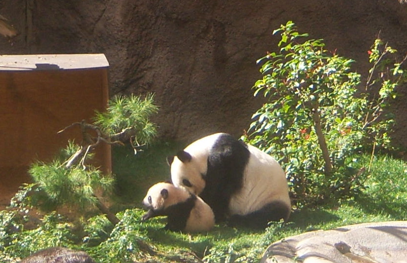 I recently visited The San Diego Zoo to see Yun Zi, the Panda cub who has become the new star of the zoo. Yun Zi is a funny, playful little bear well worth seeing in person. You must go early in order to see him. Yun Zi, which means “Son of Cloud”, and his mother Bai Yun, are available to the public daily between 9:00 am and 11:30 am. You don’t have much time to observe Yun Zi and Bai Yun because the Zoo personnel keep the line moving along past the Panda exhibit area so as many people as possible get a chance to see them, so if you plan to take pictures you have to be ready to shoot quickly.