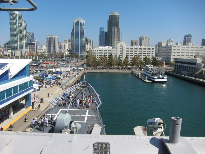 It is Fleet Week in San Diego. The Navy docked a couple of Warships down at the new Broadway Pier and opened them up to the public. The ships were the USS Princeton, a guided missile cruiser and the USS Rushmore, a dock landing ship.