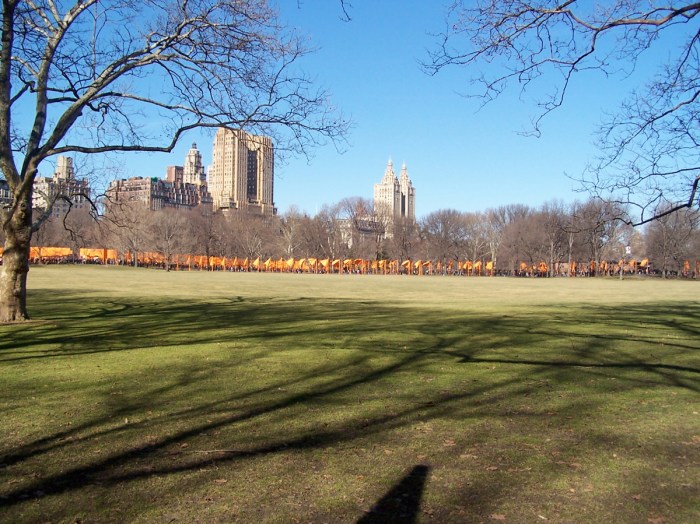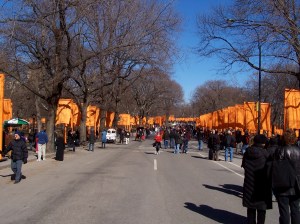 Christo stated that The Gates had no inherent meaning. The project would evoke a variety of different feelings from those saw it in person. I found it to be visually stunning based on the sheer volume of Gates. Central Park is over 800 acres and it was almost surreal to see the huge orange Gates covering the walkways of the park from one end to the other.