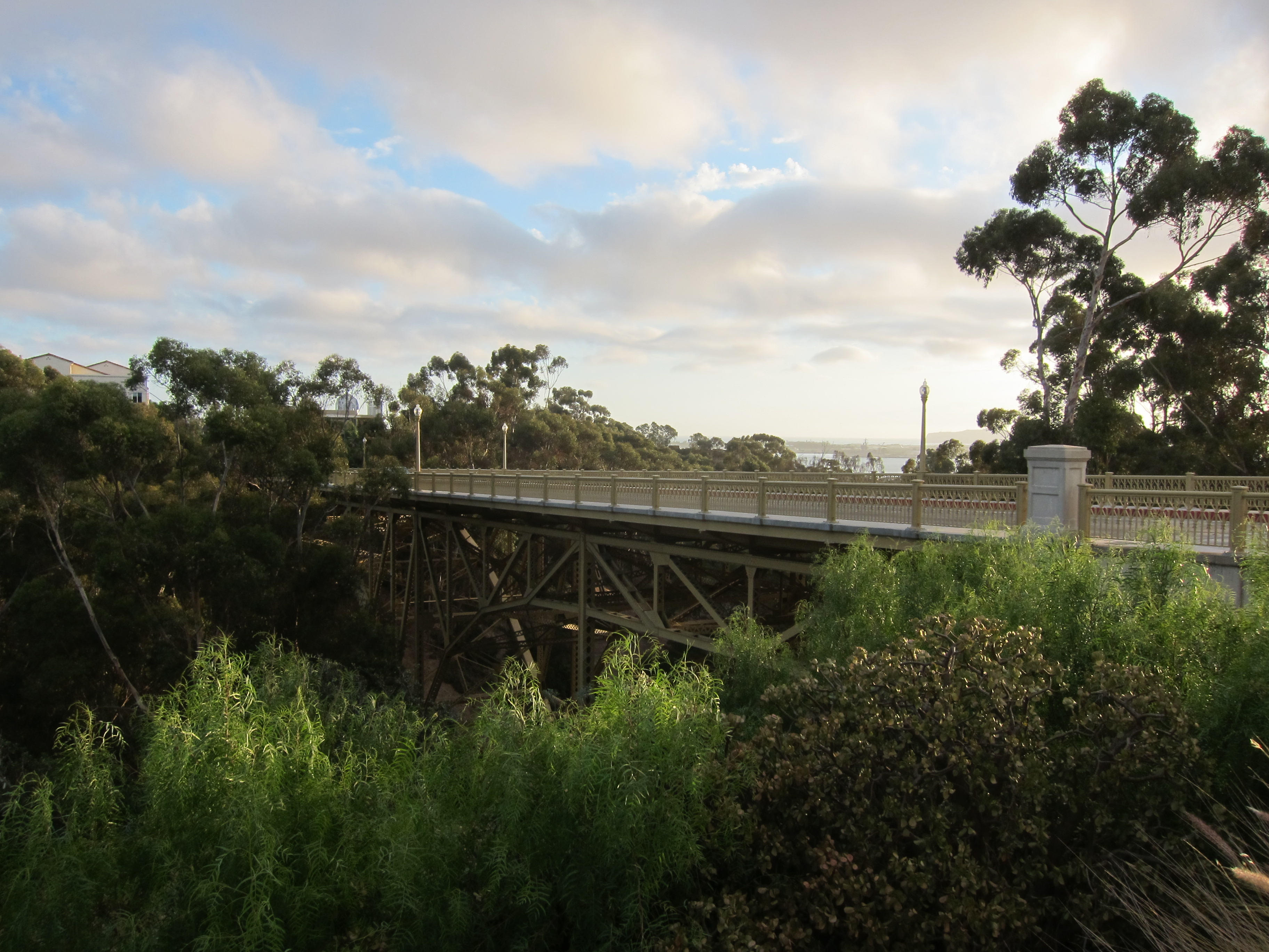 This bridge was built in 1931 and spans Maple Canyon, in the Bankers Hill section of San Diego. The steel arch bridge is 463 feet in length and 104 feet tall. I love the 1930’s era character of this bridge. They simply don’t make’em like this these days. On a clear day bridge provides good views of San Diego Bay, Coronado and Point Loma.