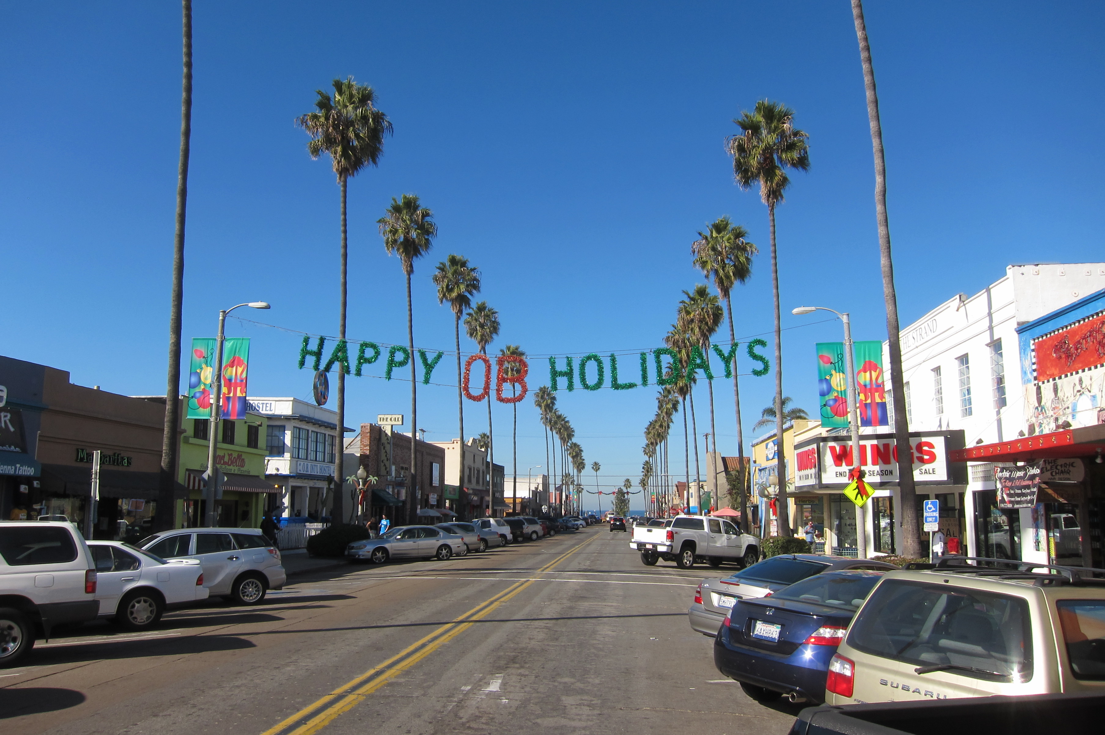 Ocean Beach is one of several beachside communities in San Diego. Like many sections of San Diego, Ocean Beach has the feeling of a small town, separated from the larger city. If you blow up this picture you can see the Christmas Tree set up on the beach.