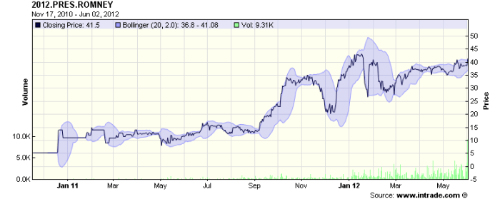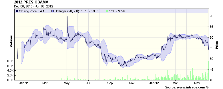 Here is how the the election prospects of Obama and Romney looked on Intrade as 2 June 12:
