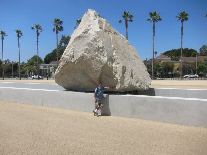 I spent a couple of days up in Los Angeles earlier this week for some R & R and visited a few of my favorite spots in the City of Angels, including the Los Angeles County Museum of Art. I had to go to LACMA to see their celebrated new work of art, the huge boulder called Levitated Mass (LM).