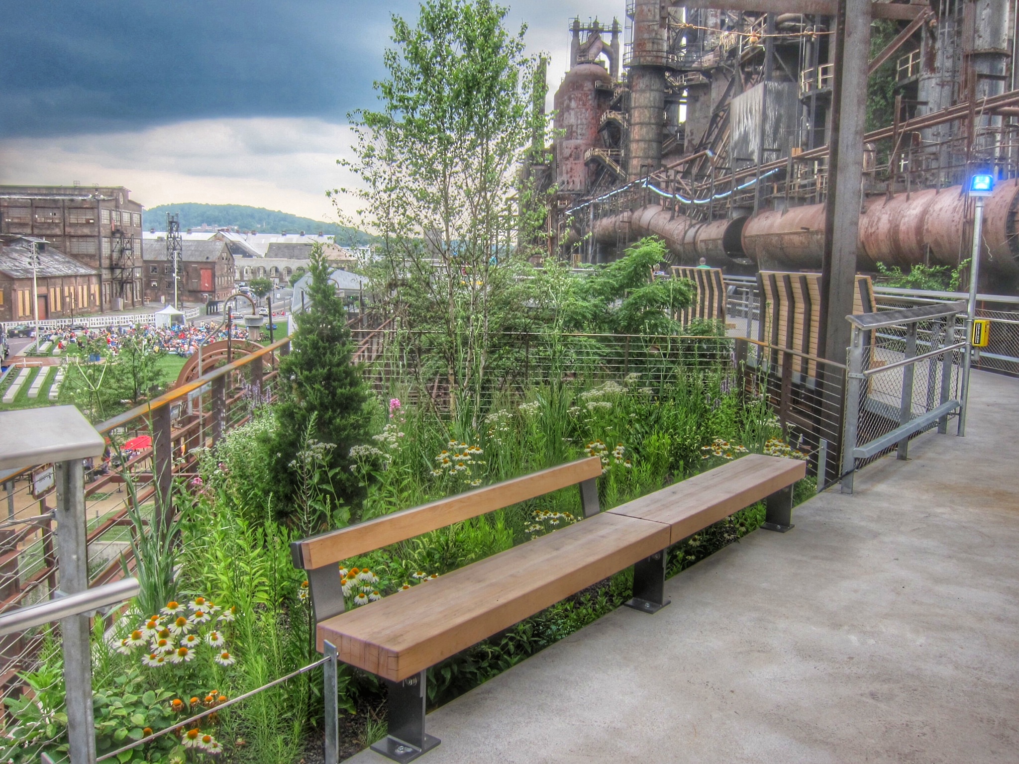This summer a 2,000 ft pedestrian walkway modeled on The Highline in New York City was opened. The Walkway is called the Hoover Mason Trestle and it was built on top of an elevated railway that was used transport iron ore to the blast furnaces.